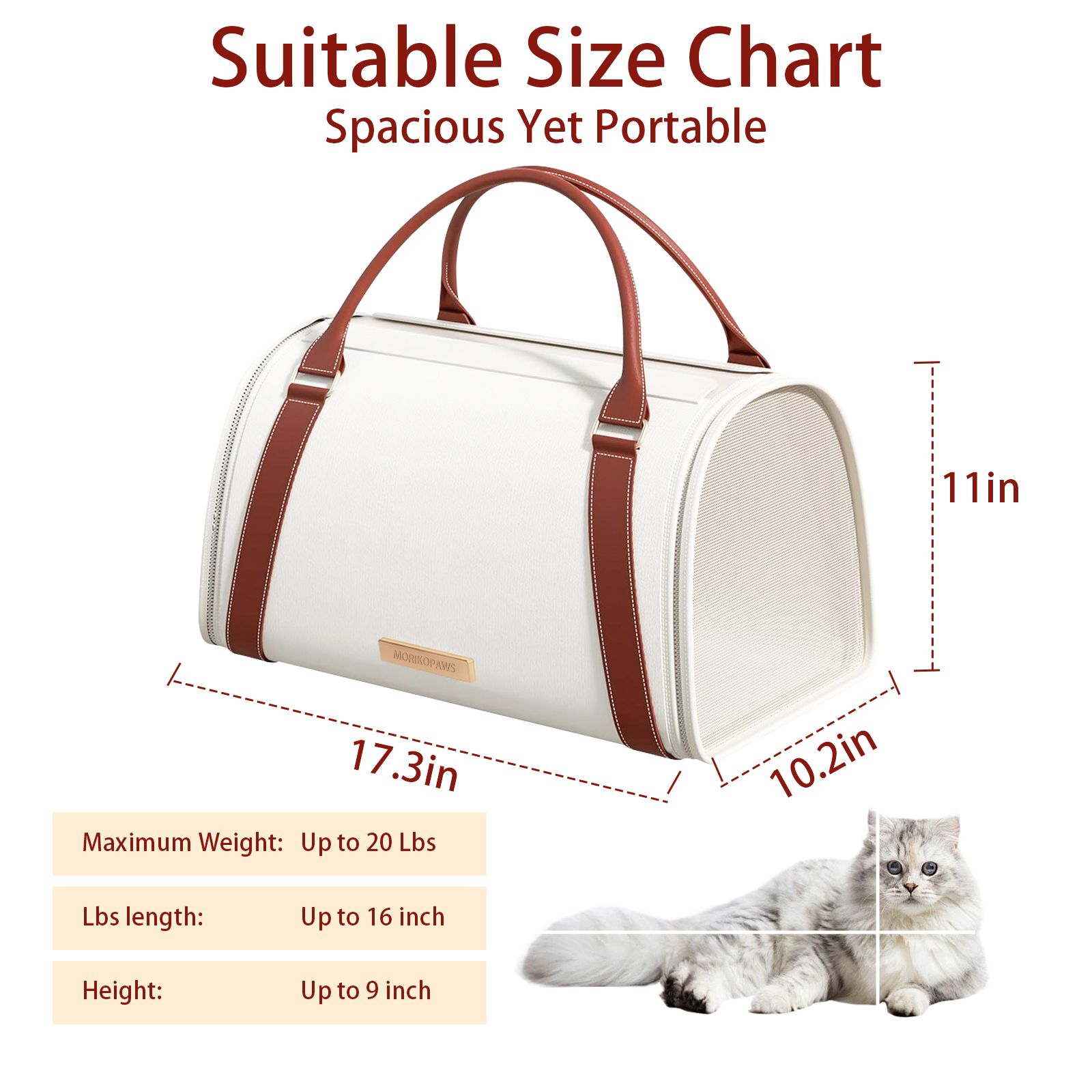 5. [Perfect for Small to Medium Pets] Dimensions: 17.32"L x 10.23"W x 11"H. Designed for pets weighing up to 20 lbs, this carrier is ideal for small to medium-sized dogs and puppies. The side pockets are perfect for storing treats, toys, and other essentials, making it perfect for most pets, dogs, and cats.