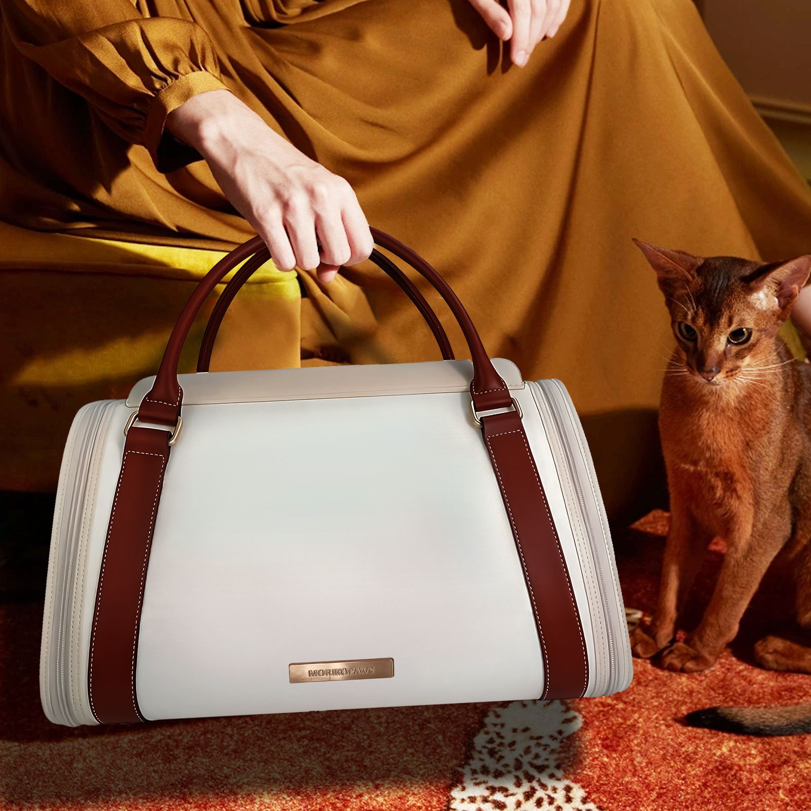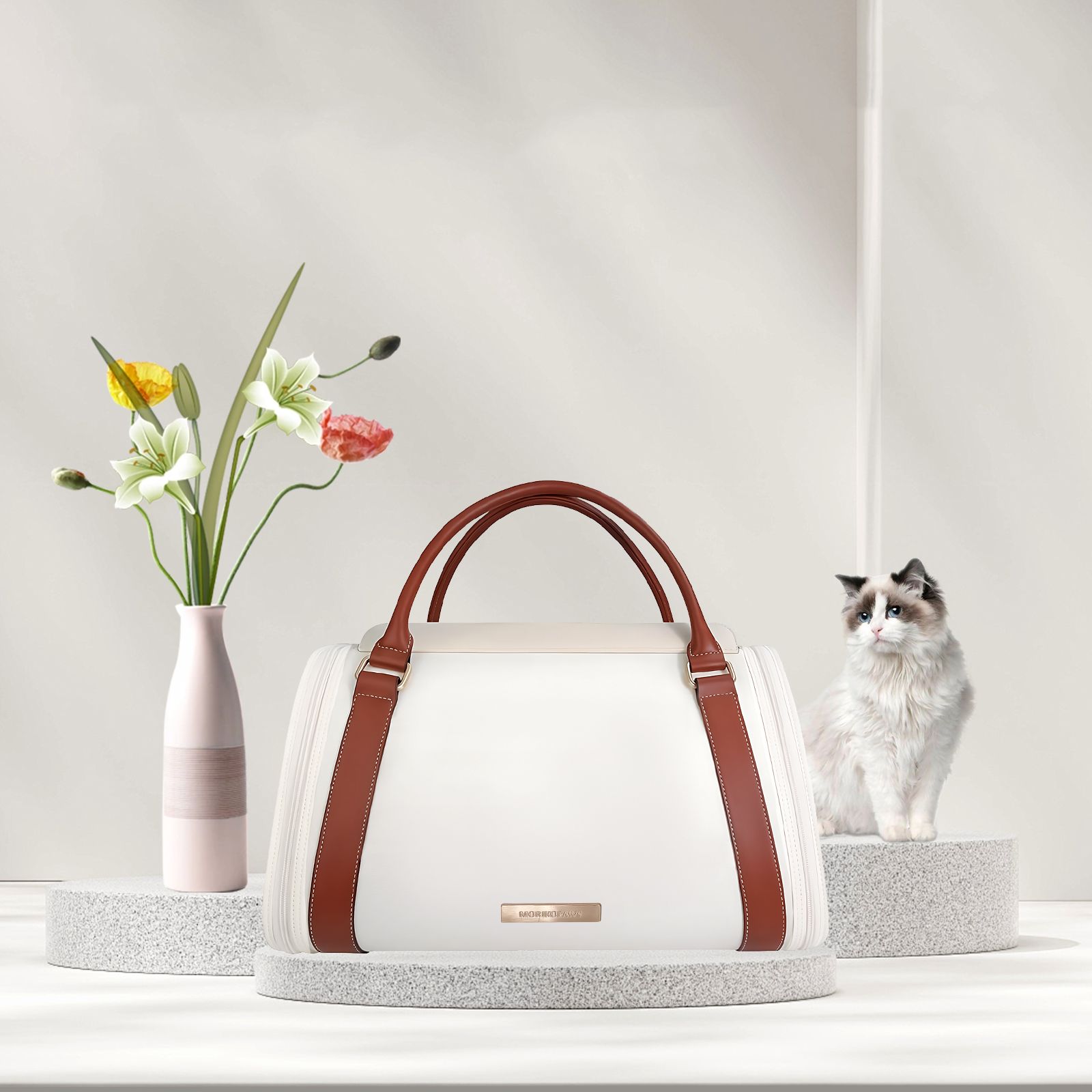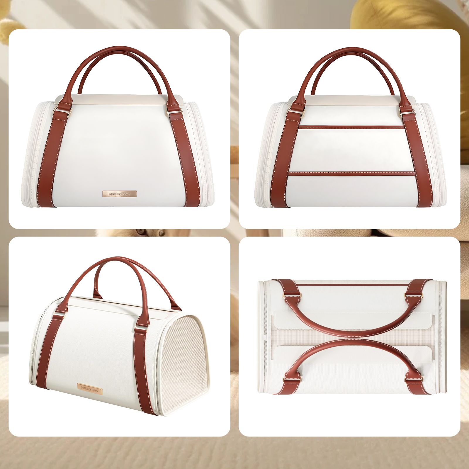 1.[2025 New Design & Airline Approved] This carrier is crafted with high-quality cellulose leather and a durable internal structure. It features convenient side pockets and a removable, washable cushion, making it easy to keep clean. Plus, it meets the airline under-seat dimensions for most airlines, ensuring you can travel with your pet hassle-free.