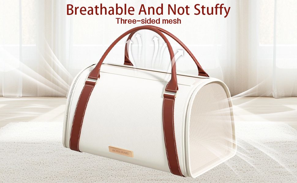 2. [Three-Sided Ventilation for Maximum Comfort] With large mesh windows on the left, right, and top, this carrier ensures excellent airflow to keep your pet cool and comfortable during travels. The breathable design allows for a better view of the outside world, reducing anxiety and stress for your pet. Whether you're on a walk, in a car, or traveling by plane, your pet will feel relaxed and secure in this well-ventilated carrier.