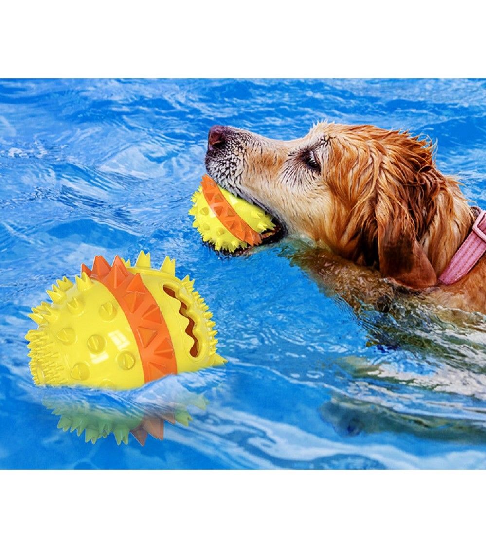 2.[Squeaky Pet Toy] The molar ball is designed with sounding device, when the dog bites this toy, it can make a squeak to attract the dog's attention and increase the dog's interest in playing.