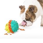 [Food Dispensing Pet Toy] Dog food, diced meat, snacks,etc, can be placed directly on the upper part of this product, in the process of fiddle, push, and play with the toy, the dog can get dog food or snacks through the leaking hole, this product allows the dog to obtain rewards through his own efforts. it not only increases the fun of the toy, but also improves the dog's IQ during playing.